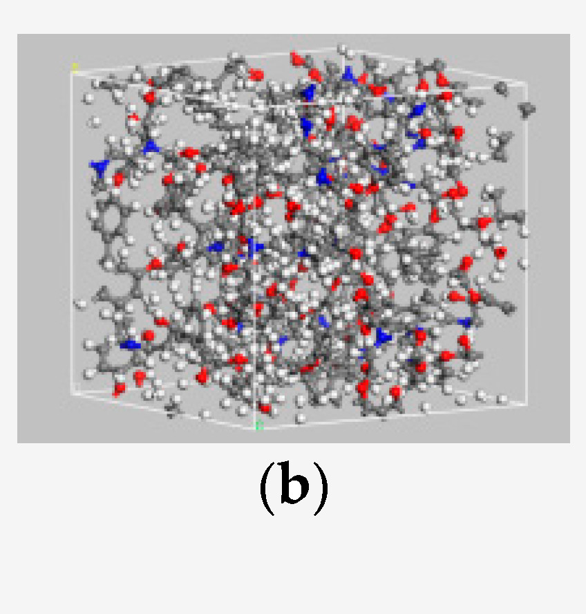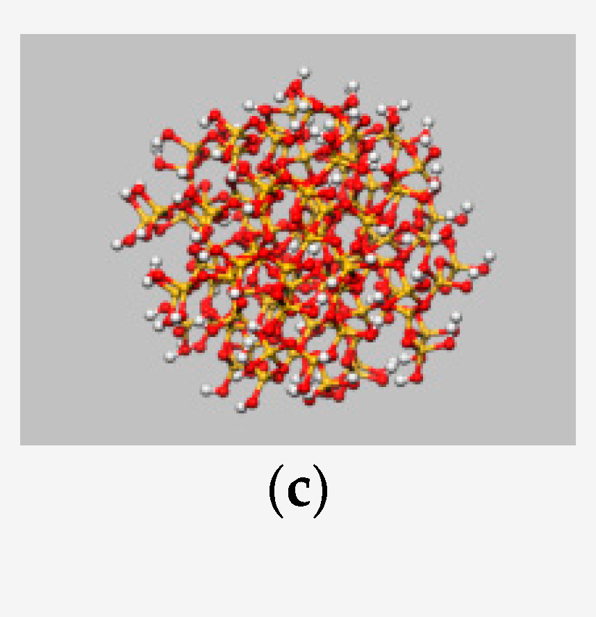 Viršuje: Nanokompozitų molekulinė struktūra ir monomerai: a) Bisfenolio A diglicidilo eterio (angliškai DGEBA - Bisphenol A diglycidyl ether) epoksidinės dervos ir kietiklio monomerų cheminės struktūros; b) gryno epoksido polimero struktūra po sukietėjimo; c) vienos keraminės nanodalelės, kurios skersmuo 10 nm, sferinė struktūra; d) 3D nanodalelių ir epoksidinės dervos polimerų persipynusi struktūra.