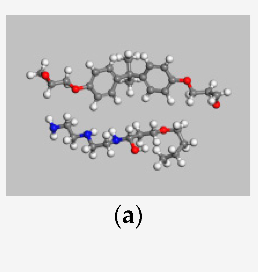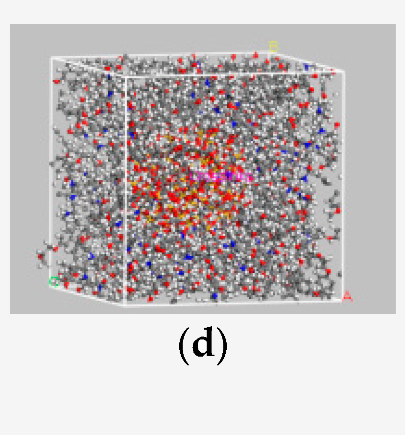 Viršuje: Nanokompozitų molekulinė struktūra ir monomerai: a) Bisfenolio A diglicidilo eterio (angliškai DGEBA - Bisphenol A diglycidyl ether) epoksidinės dervos ir kietiklio monomerų cheminės struktūros; b) gryno epoksido polimero struktūra po sukietėjimo; c) vienos keraminės nanodalelės, kurios skersmuo 10 nm, sferinė struktūra; d) 3D nanodalelių ir epoksidinės dervos polimerų persipynusi struktūra.